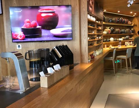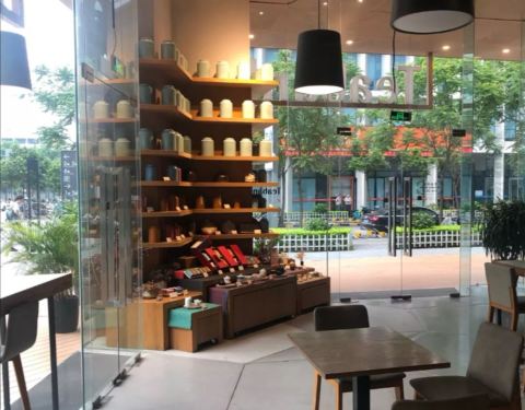 Teabank有2200平方米,不仅是茶饮之所,还是沙龙、图书馆、包装茶和手作茶器的售卖空间,是一个致力于打造茶美学生活方式的品牌,点一块蓝莓芝士,来一杯麦香普洱奶茶,消磨一下午美好的时光。