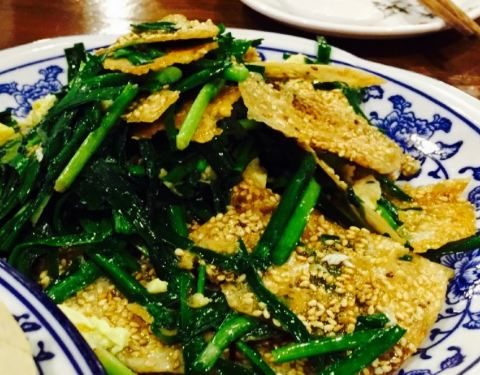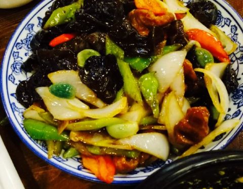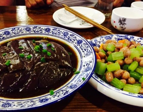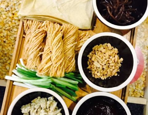 网友攻略搜的,实际上就是冲着枣饼子去的,果真好吃。赞赞赞赞赞。枣饼子一定要点,而且要打包带走那种, 。玉米面的枣饼子做的松软的,有蛋糕的松软感觉,里面要么加了白面要么加了发泡粉等等的吧, 。本以为玉米面会很硬梆梆,窝窝头款,原来如此绵软香甜,爽口。还点了特色的煎饼卷大葱(其实是小香葱), 。其实煎饼和大葱不是绝配,小葱和甜面酱才是最佳cp。这里居然夹的是回民的油炸撒子,有趣, 。脆脆的,嚼起来口感灰常带感。双椒排骨口感一般,没有招牌菜应有的惊艳口感,里边配菜很多,菜花,油麦菜,粉条, 。感情是一锅炖啊, 。很明确,花椒味儿比辣椒味儿弄。猪肝卤的凑合吧,没有俺们太原六味斋的猪肝好吃,五香调料还差那么点意思,所以会有一点小小的涩味。山楂汁是大桶的,不是鲜榨的,有些失望, 。想喝鲜榨的,毕竟这是山楂丰收的季节啦,店家别偷懒,还是做鲜榨的吧。炒合菜是标准北京味儿,吃春饼最合适。另外,桌子很特别,玻璃下面都是天然枣子和五谷,乡土气息浓郁。