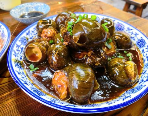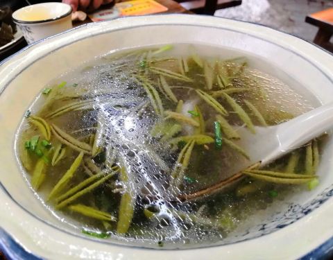 田螺塞肉:田螺特别大,肉丸和田螺肉融合到了一起,鲜香可口。 野生河虾:可以做盐水或者油爆的,很新鲜。 清蒸白鱼:肉质鲜嫩美味。 莼菜银鱼汤:莼菜滑滑的,味道不错,就是银鱼略少。 小店临街,天气不太冷的话坐在水边吃很惬意。
