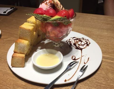 总得来说非常开心的用餐,我们四个女生,点了六道菜,份量不多,但是摆盘很漂亮,六道菜也刚刚好够四个女孩吃。最推荐的是图上的烤鸡和冰淇淋;烤鸡肉非常嫰,符合我们的喜爱;冰激凌摆盘很漂亮,以及餐厅整个内部装潢符合女孩子们的浪漫情怀。另,图上的豆腐最不推荐,因为入味不深,没有特色,味道也还一般