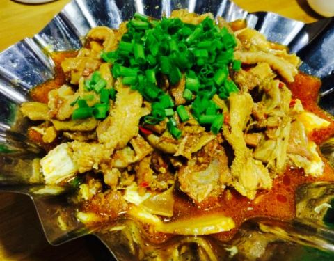 装修还是蛮有独特的,门口是满墙的铲子,内里到处是勺子,花了一番心思的。专门开车过去的,大坪停车场到处是车。五个人五个菜,还是比较爽口的,价钱也还差不多,上菜挺快的,赞一个。冬瓜炒苦瓜很清爽,苦瓜量少了点,牛杂很有味,下边的腐竹不错,还有那只兔子??很香,有椒油味泉水豆腐和猪手相较一般,但也可以啦。