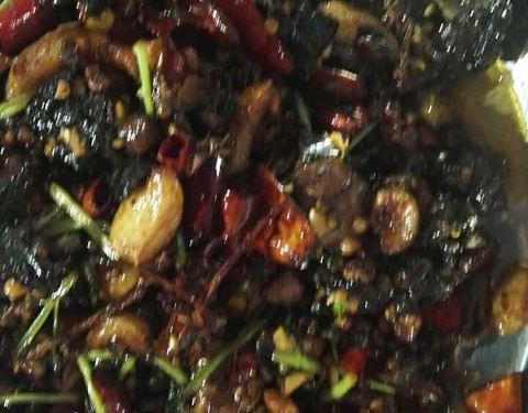 周六和孩子一起去品尝了干煸乌鸡,大厨师傅知道我们不能吃辣,特意换成干香椒炒的鸡,赞一个