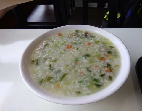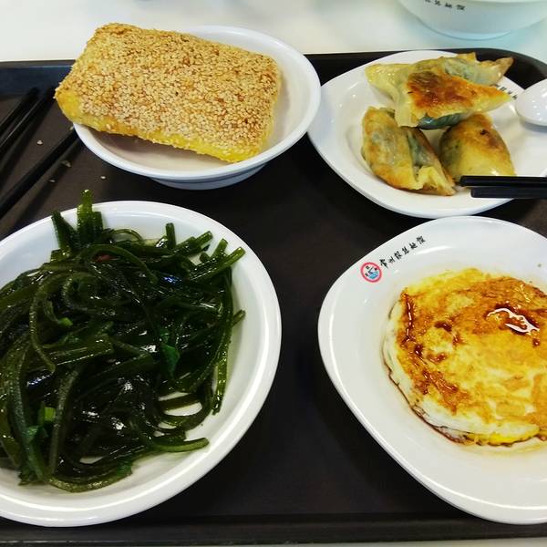 大麻糕是常州特色小吃,早餐吃过一次,有点像烧饼,又没有烧饼香,实在味道一般,没有店里的面条好吃。门口,环境很整洁,有点类似快餐的那种,正餐饭口的时候人很多,几乎是满的,附近工作的人不少在这里吃饭。清汤的银丝面,不配浇头真的没什么可吃的,只是一碗清淡的汤面。浇头,豌豆的也不错,鸡蛋柿子的更好吃一些。雪菜肉丝面早餐,桌子上还有调料,简单有些淡,加了些酱油更好一些。蔬菜粥,很热的一碗,分量也大。大麻糕