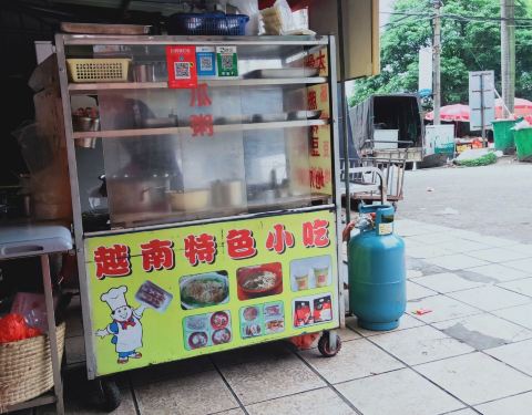 这家饭店比较特别,是开在华塑社区里的越南美食店,招牌粿条汤,加了大肠和鸭胗,热乎乎的一大碗10元RMB,里面加了青菜,酸菜,肉丁,还有我点的大肠和鸭胗。汤很好喝,鸭胗和大肠也都卤的挺入味,有一点点偏咸,不...