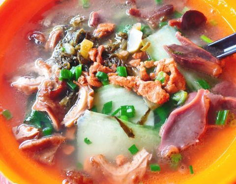 汤很好喝,鸭胗和大肠也都卤的挺入味,有一点点偏咸,不过中和比较清淡的汤和没有味道的粿条搭配起来刚刚好