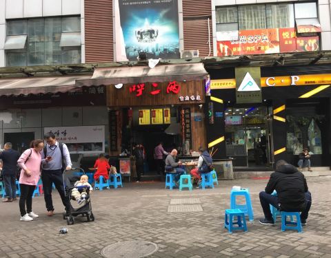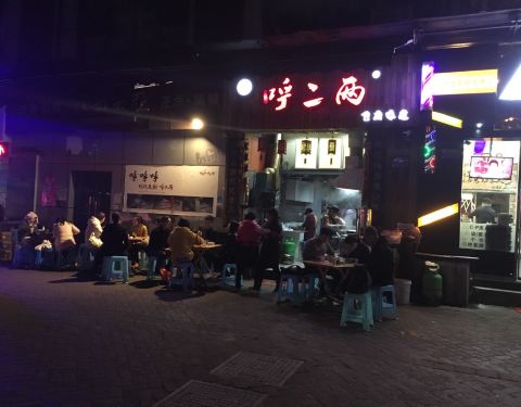 呼二两四公里店位于回龙路鑫茂源e时代楼下,地道重庆味,环境也就那样,板凳当桌子,一道风景线。味道挺麻辣的,点的肥肠面,7坨肥肠非常糯香。