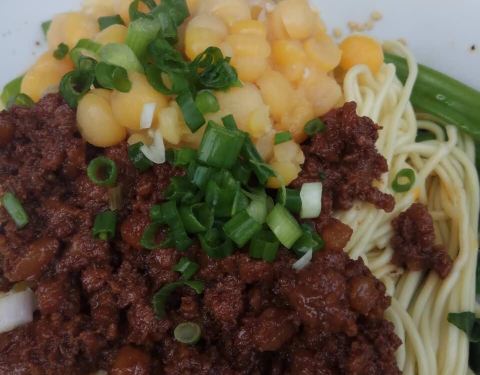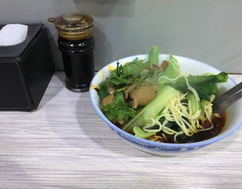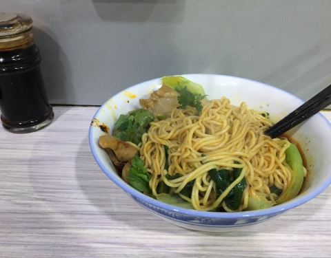 - 环境一般,就是路边的小店,不过味道挺不错的,份量也很足,点了一份鸡杂面,一份小面