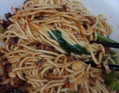 环境一般,就是路边的小店,不过味道挺不错的,份量也很足,点了一份鸡杂面,一份小面。虽然顾客也比较多,面上得也挺快,他家的辣椒很香。