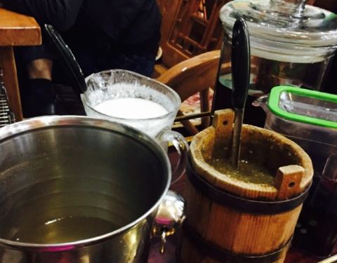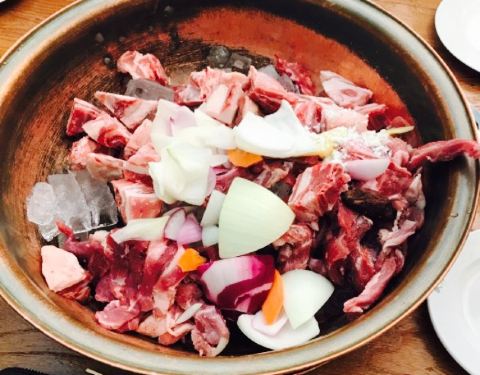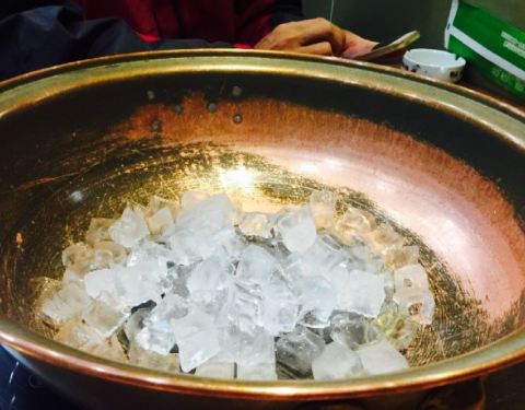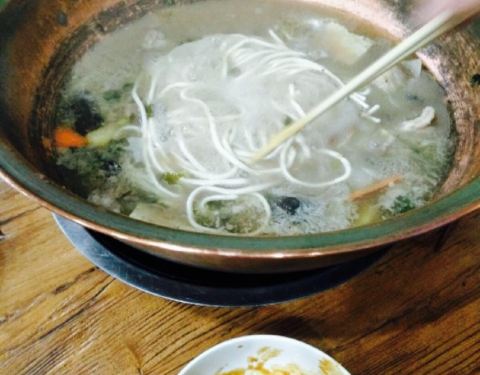 在北京吃过类似的,细节还有些许不同,先倒入冰块,待配菜主菜都放入后,还要倒入酸奶,红酒以及白酒,大约等15分钟后就可以吃了,刚开始羊肉还有点硬,多煮一会儿羊肉会越来越软,肉质新鲜,不柴,很香,很特点的吃法,值得一试。麻酱味道也不错,稍微有点辣,却也恰到好处,不够还可以免费加,很亲切,当地人很淳朴,服务态度也好,点赞。