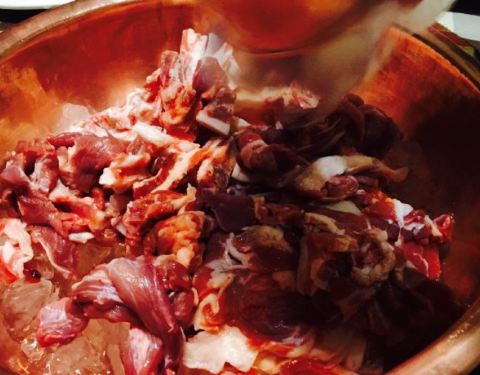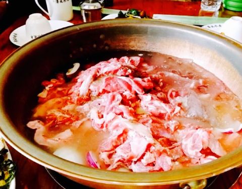 在北京吃过类似的,细节还有些许不同,先倒入冰块,待配菜主菜都放入后,还要倒入酸奶,红酒以及白酒,大约等15分钟后就可以吃了,刚开始羊肉还有点硬,多煮一会儿羊肉会越来越软,肉质新鲜,不柴,很香,很特点...在北京吃过类似的,细节还有些许不同,先倒入冰块,待配菜主菜都放入后,还要倒入酸奶,红酒以及白酒,大约等15分钟后就可以吃了,刚开始羊肉还有点硬,多煮一会儿羊肉会越来越软,肉质新鲜,不柴,很香,很特点的吃法,值得一试。麻酱味道也不错,稍微有点辣,却也恰到好处,不够还可以免费加,很亲切,当地人很淳朴,服务态度也好,点赞。