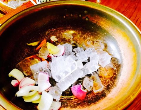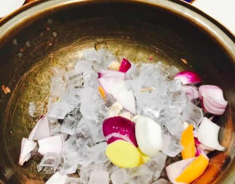 在北京吃过类似的,细节还有些许不同,先倒入冰块,待配菜主菜都放入后,还要倒入酸奶,红酒以及白酒,大约等15分钟后就可以吃了,刚开始羊肉还有点硬,多煮一会儿羊肉会越来越软,肉质新鲜,不柴,很香,很特点...