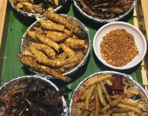 ...两个人点了几个特色菜,菜心干蒸牛肉,青瓜花炒云耳,椒盐竹肠,最赞是菜心干太好吃以至于忘了照片了