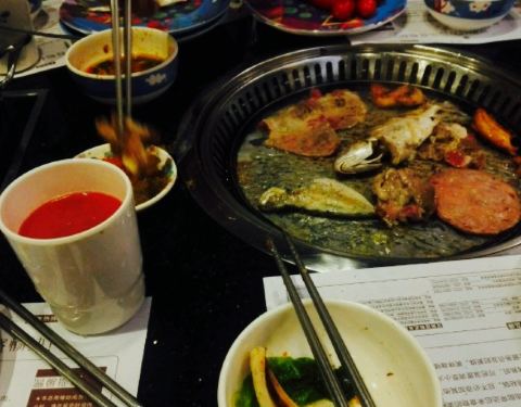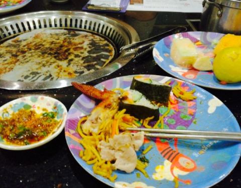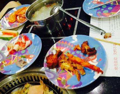 也许因为是刚开业的缘故吧,人实在好多,如果高峰期肯定要排队的。但是这家自助餐厅的菜品的确很丰富,而且特色是可以同时ENJOY烤肉和火锅。熟菜也很入味,有菜心,鸡腿,意粉,西兰花等等。喜欢有用芒果的寿司,...
