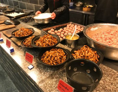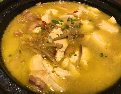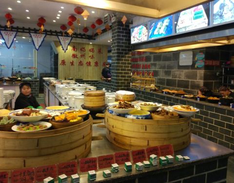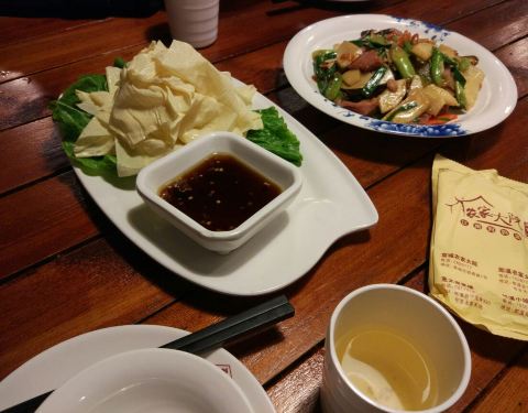 过年宣城这里也是冷冷清清的,好多地方的饭店都不开门,看在大众上这家过年不打烊,也不管好不好了赶紧带着家人冲过来。里面还挺大的,一进门就是热气腾腾的,看着就很不错,服务员一问,还好我们来的早,有位子可以坐,二话不说赶紧下来点菜,按我的经验是越快点越好,这过年很多菜都不一定有的。呵呵,果然不错,好些菜别人还在慢慢琢磨呢,然后就没有了,这大过年的,能吃到就很不错了。 豆腐皮:看着就很不错,而且能看到一个阿姨在那里现挑的。 炖老豆腐:清清爽爽,豆腐有股子浓浓的豆香味。不错! 焖面:这个很有地方特色,味道恰到好处,面也筋道。 臭鲑鱼:有点偏咸,但做的不错,鱼大小也合适,肉质板实,吃的美美的。 蒿子粑粑:这个太有特色了,其实是当地的一种雪菜炒过后,用糯皮粉包好放锅里煎出来的,这个点心非常有特色。 总结:很不错的一家饭店,服务员也都很和气,菜的份量也足。一家人吃的饱饱的,推荐!