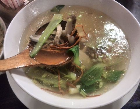 在清境农场还挺多云南菜的餐厅,路过看见这家晓云南餐厅主打云南菜,还提供免费的接送服务。于是就在这里吃晚餐,回去民宿也有车可以送。这里的招牌菜是翁仔鸡,都是新鲜出炉,要了一只,色泽烤得不错,外皮有点脆,感觉就像烧鸡一样。云南酥肉煲,酥肉就是猪肉,肉质嫩滑。当归烘蛋,没有怎么吃到当归味。葱爆山猪肉,这里的山猪肉还挺爽口的。例汤,有杂菌和虫草花和猪肉,感觉油过多了。