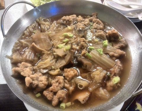 晚上住的清境农场,搜了一圈还是决定过来这家吃,其实因为历史原因,所以清境农场附近的都是云南菜餐厅。这家评论还可以的,也是吃好才发现原来来这家店吃饭是可以接送的,不过自己走也不远,当散步吧。招牌是烧鸡,新鲜现烤,其实味道闻起来不错,外皮也比较脆,不过唯一问题是台湾这边用的鸡种都是大种鸡,鸡肉比较不够嫩滑。点的是合菜,就是套餐,价钱固定,分量其实很足,不过说实在的,云南菜来说这家算是口味改良过所以不太好吃,还是偏甜。老板娘的服务还是不错的也很热情。