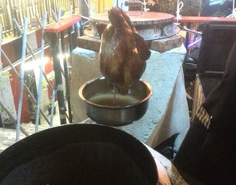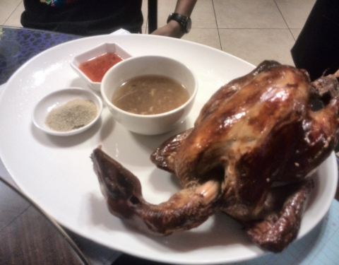 - 这里的招牌菜是翁仔鸡,都是新鲜出炉,要了一只,色泽烤得不错,外皮有点脆,感觉就像烧鸡一样