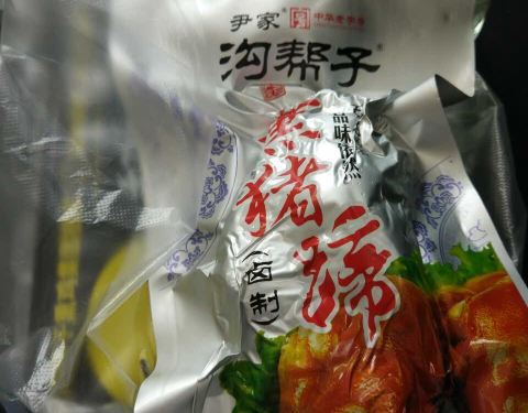 在沈阳机场买了一袋熏猪蹄,一袋鸭翅,16一袋,不贵,鸭翅拆开吃了,味道还不错,回去再试试猪蹄