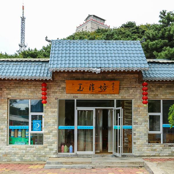 坐了一夜的火车,肚中早已经开始了抗议,虽然说早上也吃了一点东西,但那哪里能挡得住呢? 还好在龟蒙景区山顶也有不错的餐厅存在,不然我们这作死的不吃饭先上来看景色就真的是一场悲剧了。 这家餐厅就在龟蒙景区最高点【龟蒙顶】下的一处避风地,由以前的防空洞改建而来,所以用餐环境还是挺有特色;背后中间处的那个小石头建筑,就是整个沂蒙山大景区的最高点,景区的观光车可以直接坐到玉津坊餐厅隔壁,吃完饭从旁边的栈道下山,刚好合适。来了山里,必然就要吃山珍!沂蒙山中有很多的宝贝,无论是声名在外的“十足全蝎”,还是独有的野山羊、溪水鱼,都是让人难忘的美食佳肴,作为一个从西北过来的汉子,我对于羊肉可是很挑剔的一个人,但这里的羊肉成功征服了我。在《舌尖上的中国II》里面,专门有一段是讲山东的杂粮煎饼,其拍摄地就是在临沂.沂蒙山这一带,作为我国煎饼最正宗的地区之一,必然要点上一份尝尝才行,惊喜的是搭配的素菜竟然有香椿,在此地实现了香椿自由,哈哈~溪水中生长的小鱼,油炸之后可以直接嚼碎了吃,味道很香~香椿炒鸡蛋,是我认为最下饭的美食之一,有没有认可的朋友?吃完饭出来发现已经变了天,便没有上龟蒙顶拍照了,一层大雾什么都看不见,希望明天有个好天气。 小提示:人均40元左右,可以找人拼餐,就能多吃几个菜啦,哈哈!