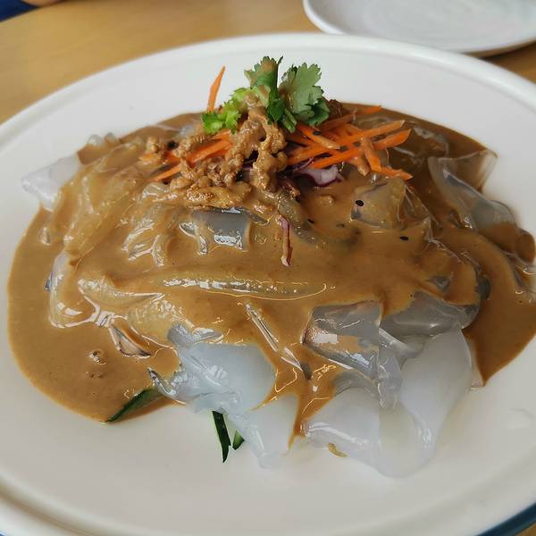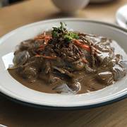 关东小磨东北菜的环境挺好的,中午去的时候人也不是很多,喜欢这里的招牌东北大拉皮,酱料很足,味道很棒,大拉皮非常爽滑,水饺也是特色,但是味道一般,锅包肉我挺喜欢的,表皮脆脆的,甜酸口味,里面的肉白花花的,好评。