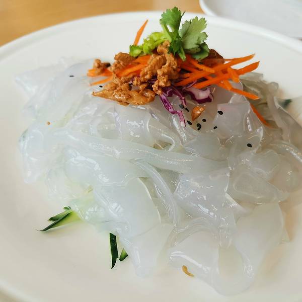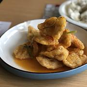 - 大拉皮非常爽滑,水饺也是特色,但是味道一般,锅包肉我挺喜欢的,表皮脆脆的,甜酸口味,里面的肉白花花的