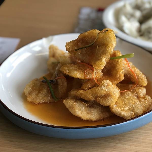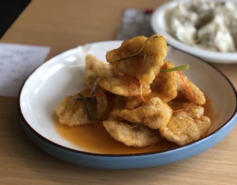 大拉皮非常爽滑,水饺也是特色,但是味道一般,锅包肉我挺喜欢的,表皮脆脆的,甜酸口味,里面的肉白花花的