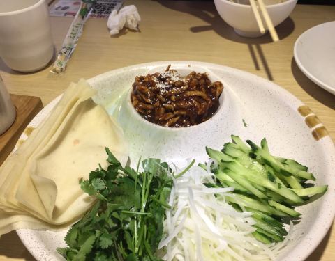 味道一般,环境和服务都还不错,京酱肉丝有点咸,韭菜猪肉虾仁饺子还不错
