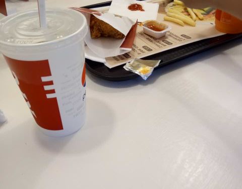 有点辣的呛,可乐冰多了,薯条不错!可以推多点套餐!