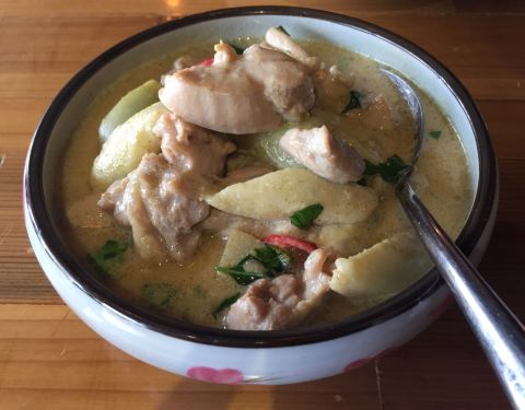 在复星艺术中心看展览,就说到十六铺吃个中饭,挑了半天,挑了这家。视野很好,能看见金茂和上海中心。点了绿咖喱鸡,炒龙豆,炒肉末,两碗米饭。这三道菜都特别适合就饭吃,味道很浓,很下饭。米饭也很香,是长粒米