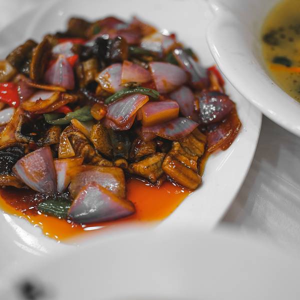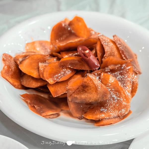 到靖江的第一顿就是吃的摇头汤包,这个摇头指的就是端上来的汤包会摇头晃脑,形容非常“Duang”的状态。点加料汤包的话,里面的蟹黄会多一点,店员大妈会亲手帮客人抓出笼屉里的包子,只见她一手端着碟子,一手轻提汤包,动作迅速把汤包扣在碟子上,眼前的包子皮薄如纸,几近透明,听说摇头家的汤包就是以皮薄出名,汤汁略烫,得小心翼翼地吃,味道特别鲜。 虽然现在不是吃螃蟹最好的时候,但是味道依旧绝伦,心里不禁盘算着,秋天的时候还要再来。还点了芋头烧鸡,也是他们家的主打菜之一, 靖江的芋头也是一绝,香糯滑润,裹着酱汁的芋头和鸡肉,味道浓郁可口,是淮扬菜经典的甜口。马铃焗鮰鱼的分量对于我们两个女生的胃口来说实在有点大了,谁能想到土豆和鮰鱼的组合会如此的奇妙,鮰鱼也是这一带的风物,肉嫩而肥,怪不得也被叫做“肥王鱼”。每一块都有满满的胶质,女孩子吃了一定很补胶原蛋白。 推荐:蟹黄汤包、芋头烧鸡、芋头烧肉、马铃焗鮰鱼 地址:康宁路16号医院对面 这里还有个小插曲,我们在吃汤包的时候偶遇了一个美貌的小姐姐,一个人点了三个汤包,我和扇贝都觉得一个来吃的话点大菜吃不下,但是不尝尝又有点可惜,我们就将自己的菜分了一些给小姐姐尝尝,因为我们就聊起来了,吃完后还相约女孩们的酒局,喝了个小酒,想起来也是奇妙的缘分。