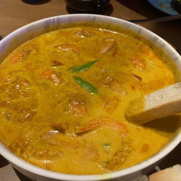 咖喱虾一份88,配面包条。泰式口味,虾很干净,味道中规中矩。