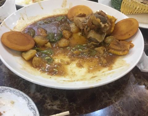 - 东北菜不愧是东北菜,量大惊人,我们点了三个,最后只吃掉了一个菜的量,怕浪费只好打包,回酒店当夜宵