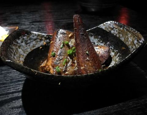 鹅肝寿司是我到所有日料店必点的项目,这次还行,不算惊艳,也没失望。火炙三文鱼寿司也差不多。牛舌比较小块,吃到第三块就觉得有点油腻了。厚切三文鱼,没有那么厚,可能因为先吃了寿司和牛舌,味道有点怪,只吃了2片,实在不想吃了。甜虾也是还过得去的水平。 价格在同样水准的日料店里面,偏贵。 虽然去的时候店里很空,但是一个人总是被安置在吧台