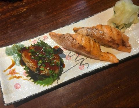 厚切三文鱼,没有那么厚,可能因为先吃了寿司和牛舌,味道有点怪,只吃了2片,实在不想吃了