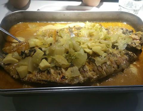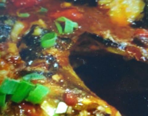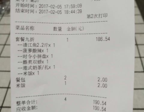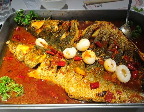 点的荔枝香辣黑鱼,2.2斤?两个人吃正好。味道很好,但是鱼不够入味。。服务不是很到位。
