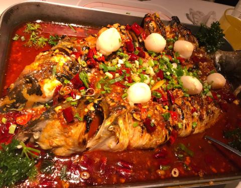 - 服务态度也是很好的,烤鱼,也是很大的一条,有滋有味,特别是黑椒味的烤鱼,很好吃的,还有麻辣清江...