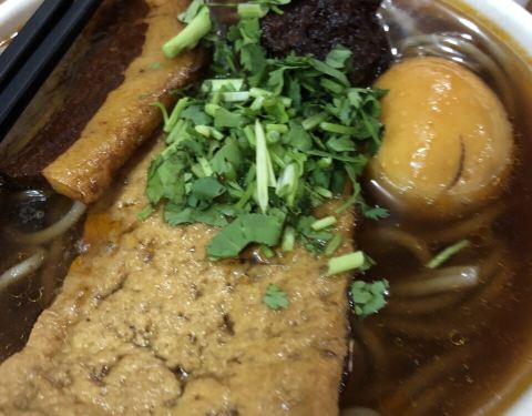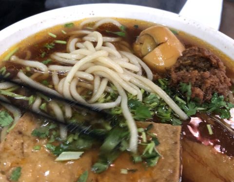 ...白面和荞麦面两种,分大小碗,味道不错,一个鸡蛋一大片红烧五花肉,一大片豆腐,很实惠,做得很认真