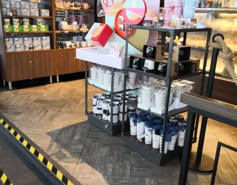 苏州火车站出发层,在4B口边上,没有扶梯,需要楼梯上去,可能对于拉着大行李箱的有点不方便 店面虽然不大,但是东西还是比较全的,我主要说的是杯子,一旦驻足停留的话,营业员就会介绍几句,不过星巴克的杯子...