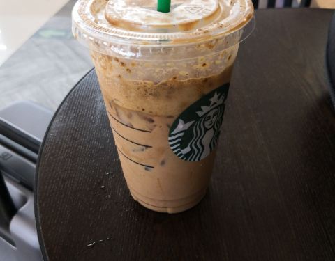早早的结束行程就到火车站等了,候车二楼有星巴克,所以就过去喝点饮料消磨时间。 开放式店面,点单处排队人不太多,座位倒也没有坐满哎。不过里面空调不足,略热。 火车站店也可以享受点评的买二送一券,蛮不错的。照例点了香草星冰乐。喝惯了的口味,不是很甜,还可以。不过出的新品马达加斯加香草,其实就是加了糖浆,要39元,有点坑。