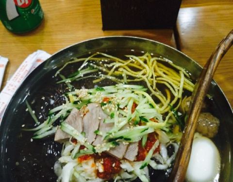 延吉有名的顺姬,服务大楼冷面,终于来一次,作为冷面杀手的我,必须都尝一遍哈,在市场里,环境很好,店面宽敞明亮,收拾干净,来碗冷面,爽歪歪了,个人感觉哈,我感觉服务大楼的味道和顺姬差不多,基本没差异,但我感觉服务大楼各方面稍好于顺姬,延边的冷面基本味道都大同小异,都是酸甜口,不一样的就是面有的是现压的,有的不是,这边都是荞麦冷面,经典的是搭配锅包肉吃,锅包肉做得倒是不错,就是汁太甜了,尝过韩国,延边,的冷面,下一站,也是最后一站,朝鲜。