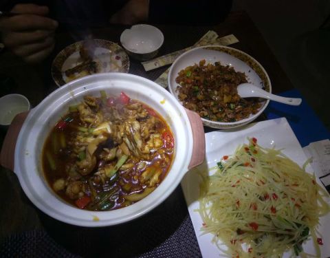 还不错,推荐去吃,上次去的时候没有点他们的招牌菜,不错其他的菜品也蛮好吃蛮实惠的,尤其是辣子鸡,吃的好爽,环境也不太吵,挺满意的!
