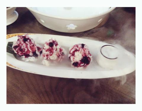 菜品味道不错 分量不是很多 蓝莓山药味道很好 第三次去了