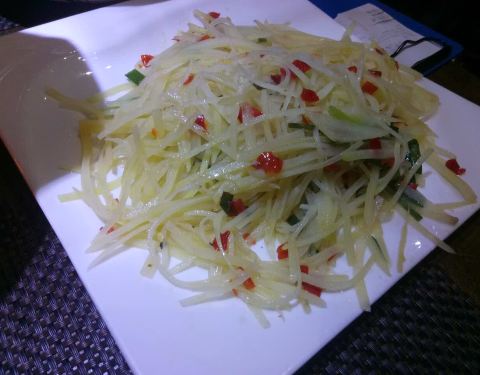 牛蛙是必点菜之一,味道不用说,今天点的剁椒土豆丝,白椒炒鸡胗,那个什么糟小汤圆味道都很赞