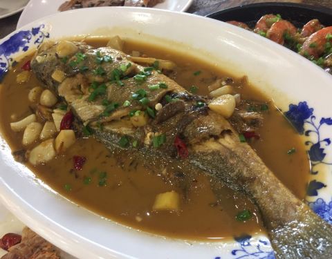 宁波九龙湖2天1夜,当天早上从上海开车过去,想着九龙湖附近都是农家菜,不如到慈溪吃个中饭。 他们家评价比较好,就直接开车过来了。运气不错,来到门口的时候正好街上有停车位,就直接往上开了。 工作日中午感觉生意都是好得不得了。老人小孩入座,我和老婆去点菜,基本都选的这里的特色菜。 「宁波呛蟹」来宁波这个肯定必点,呛蟹的味道还是非常的正点的。感觉3个人吃的话,还是有点多,比较呛蟹做的味道比较的咸,吃多了嘴巴干,会多喝水的。 「凉拌豆腐衣」他们家的特色,走进点菜区,就可以看到一直冒着热气的豆浆,然后服务员是马不停蹄的做这道菜。豆腐皮因为是最新鲜的,所以味道比较的香浓,蘸着鲜酱油味道鲜美无比。 「烤鸭」他们家的烤鸭味道蛮不错的,而且价格比较美丽,蘸糖或者甜面酱味道都很好吃。 红烧大黄鱼,陈放的时候看着很新鲜,厨师们就用调料稍许挂挂汁水。 目鱼蛋炖蛋,适合给小朋友点的,味道有了目鱼更加鲜美一点,小目鱼一口一个味道再换个料。 椒盐皮皮虾,3月底去的,皮皮虾肉质不是很饱满,不过因为是活的,还是很有弹性的。 总的来说,这家店选的还不错,性价比比较实惠的地方。