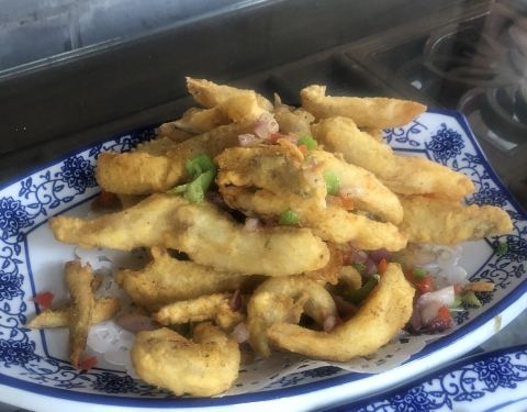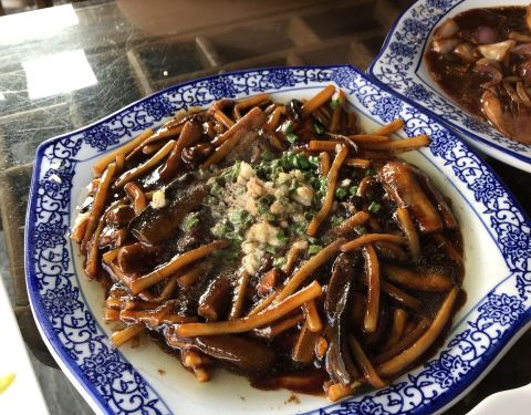 ...也是本地人只能中很有特色的一道时令菜,选取自然生长的茭白,选其中最嫩的部分与蛋液滑炒,非常好吃