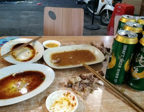 路边随处逛发现的烧鹅店,去的晚了,品种不是很多,只剩下烧鹅和烧鸭了,没有迟到叉烧 有多多少少的遗憾。 味道还不错,因为可能时间有点长了,外皮不是很好的口感了,有点硬了。环境就是很一般般的了,服务也一般,爱答不理的。