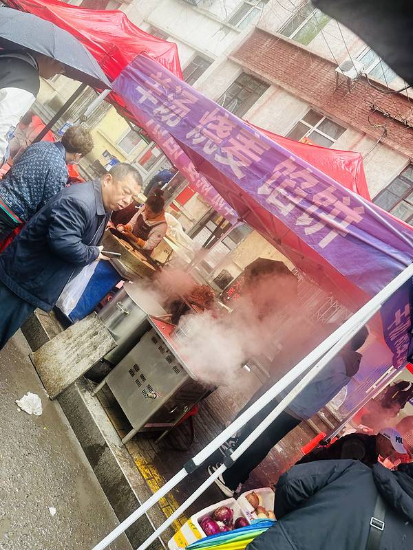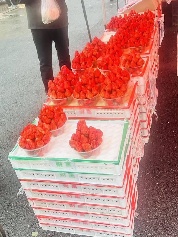早市上7块钱一碗的羊杂汤,内容很丰富。10块钱的一屉烧卖也很实惠,烧卖、肉饼、羊杂汤物美价廉,早市上的早餐吃美了。丹东草莓,个人感觉比青岛的草莓丰满扎实。