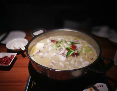 天气开始变热了,胃口也开始变差了,今天来点重口味的,看到这家酸菜鱼不错,来尝尝。可能是因为今天下雨所以人不是很多,小小的地方布置的倒是还行,就是座位太紧凑了,稍胖些的人坐下来有点不太适应。 因为有...天气开始变热了,胃口也开始变差了,今天来点重口味的,看到这家酸菜鱼不错,来尝尝。可能是因为今天下雨所以人不是很多,小小的地方布置的倒是还行,就是座位太紧凑了,稍胖些的人坐下来有点不太适应。 因为有小朋友,不敢选太辣的,所以点的酸汤微辣的,坐定后店家还送来了小食,油炸炸的酥酥的黄豆,我不喜欢吃,太油,不过还是谢谢店家了。稍等了大约15分钟一锅鱼片就上来了,里面配以酸萝卜和宽粉,自己另加了几个涮菜,服务员很热情,告诉我们先吃鱼片吃完再涮锅。 清清爽爽的,黑鱼现杀,所以味道很鲜美,贵在新鲜,酸汤微辣小朋友完全适应,鱼片滑嫩几乎没有刺,所以吃着很不错,最后涮菜里的炸腐皮确实不错,中途看到我们骨碟装了一半骨头,服务员很主动的帮我换新,服务真的很勤快,而且还帮我们把涮菜锅里的浮沫给去掉,很用心的服务。 总结:人均差不多80左右,吃的很舒服,选料很好,食材都很新鲜,推荐!