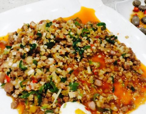 虽然饭馆不大但是很整洁尤其是菜品做的特别美味, 。我们男女两人点了一盘炒腊肉,一份丸子豆腐蔬菜汤,然后个叫了一份蘸水。虽然菜品很简单但是那盘腊肉非常大一份,狮子头汤的肉丸非常清新,其实那盘蘸水显示出厨师的水平随便打了个蘸水可是味道超好使用的菜油非常清新和地道。