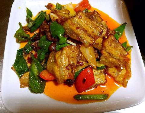 三人去吃,点了回锅肉,辣椒鱿鱼须,萝卜排骨汤,本还想点,老板娘说够了先试试,看合不合口味,人很好。 回锅肉吃不够,鱿鱼须我这个广东人虽吃着辣,但辣得好,萝卜汤很清甜,分量很足,本以为吃不完,饭菜很下...三人去吃,点了回锅肉,辣椒鱿鱼须,萝卜排骨汤,本还想点,老板娘说够了先试试,看合不合口味,人很好。 回锅肉吃不够,鱿鱼须我这个广东人虽吃着辣,但辣得好,萝卜汤很清甜,分量很足,本以为吃不完,饭菜很下饭,到后来都吃完了。 店里环境很热闹,很多重庆叔叔喝酒谈天。 - 火爆鳝段、泡椒鱿鱼须、辣子肥肠、香辣小龙虾……这里的菜品永远红红火火一盆,像重庆人的热情